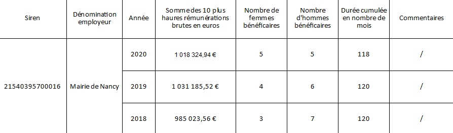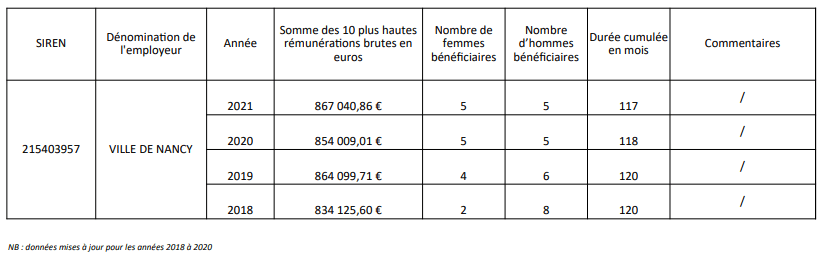 Tous les ans au mois de mai, la Ville de Nancy se doit de publier les dix plus hautes rémunérations des agents.