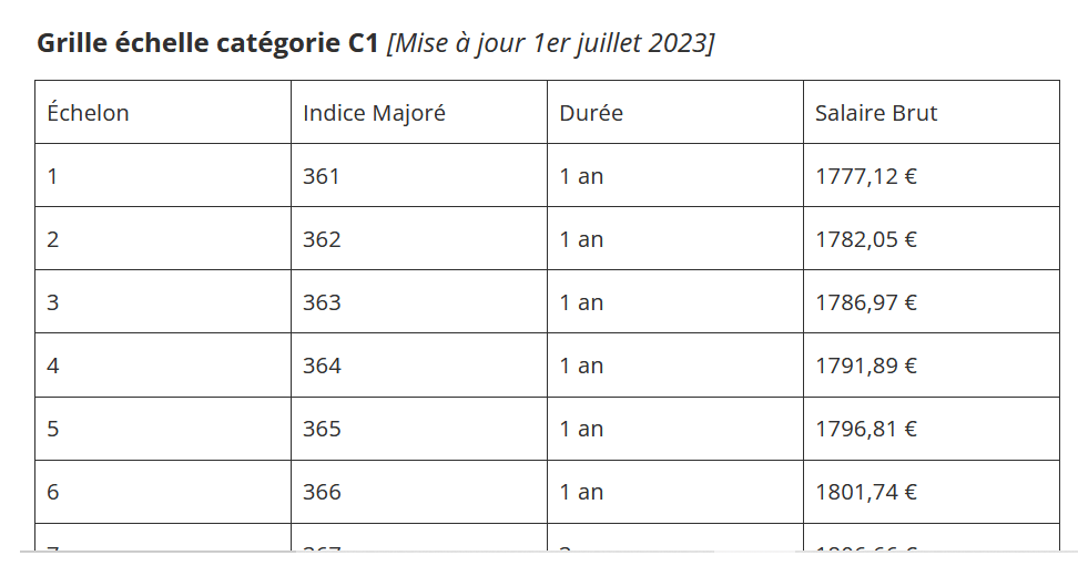- Au 1er janvier 2024 : + 5 points d’indice sur toute la grille et toutes les catégories, environ +25 € par mois.